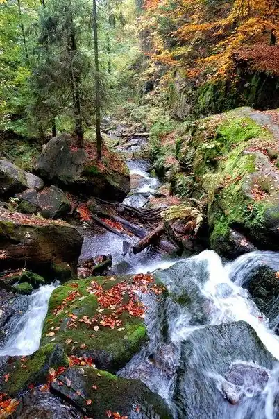 Він проходить через основні красиві водоспади Полонини Руни.