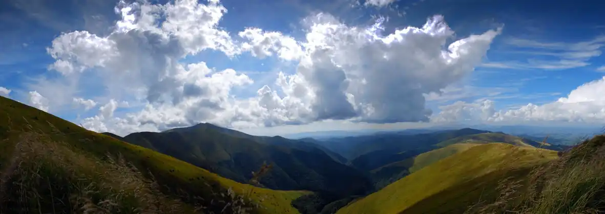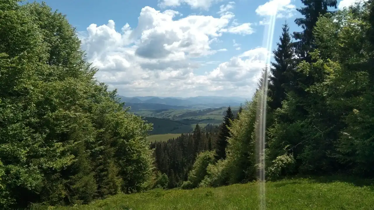 Поступово підіймаємось по живописних стежках та зелених лісових просіках на полонинський хребет. Звідси відкривається чудовий фотографічний вид на навколишні гори та долини.