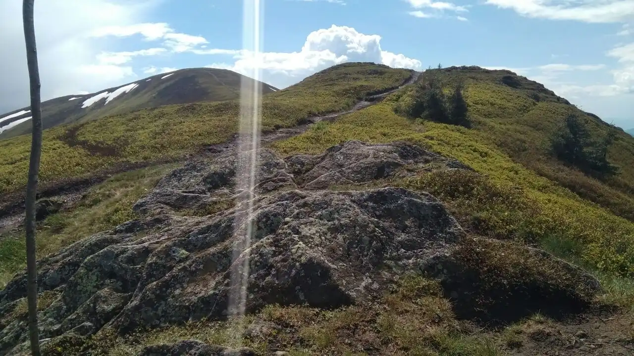 Від джерела стежина веде прямо до першої вершини на маршруті - дивовижної гори Ряпецька. Досягнувши вершини ви не зможете втриматись від бажання помилуватись красотами навколишніх пейзажів та пофотографуватись. Після вгамування жаги, рухаємось вперед високогірними стежками до наступного «місця сили». Воно розташоване на стародавніх та могутніх монолітних каменях. За легендами вони є провідниками та накопичувачами життєдайної високогірної прани.