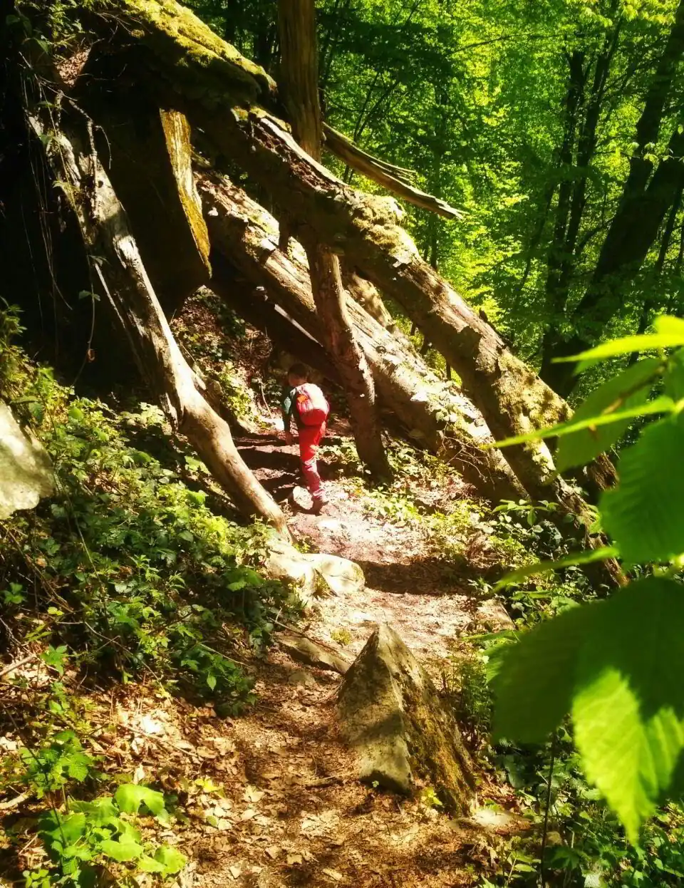 Далі маршрут простягається по широкій лісовій стежці. Тут високі та могутні буки й граби закривають своїми дивовижними кронами майже усе небо.